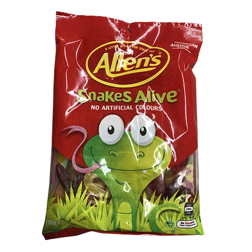 Ingredients: Glucose Syrup ( Wheat Or Corn), Cane Sugar, Thickener (Dextrin Roasted Starch, Acid Treated Starch Or Starch Acetate)( Wheat ), Gelatine, Food Acid (Citric), Humectant (Glycerine), Flavours, Colours (Carminic Acid, Black Carrot, Paprika Oleoresin, Copper Chlorophyllin, Turmeric, Vegetable Carbon). Contains Wheat. May Contain Milk.