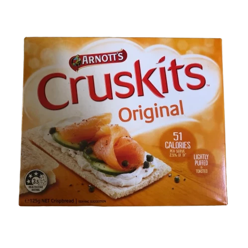 Arnott’s Cruskits Cripsbread Original are lightly puffed and toasted, with only 51 calories per serve. Puffed and toasted for a light and tasty crunch, Cruskits are the ideal cheese or dip cracker for a delicious light lunch or snack.