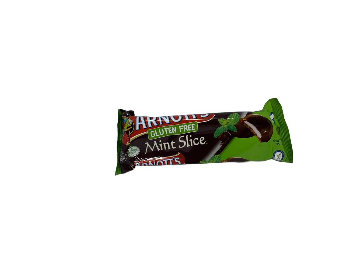Arnott’s Gluten Free Mint Slice is made with pure mint oil. Contains no artificial colours or flavours.