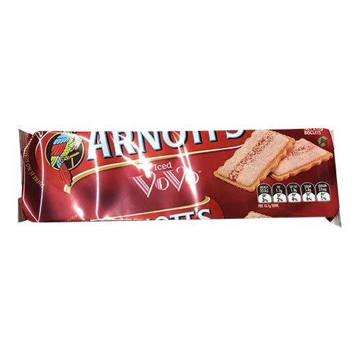 Biscuits: Sugar, Wheat Flour, Raspberry Flavoured Filling [Sugar, Apples, Glucose (From Wheat), Raspberries, Fruit Fibre, Gelling Agent (Pectin), Food Acids (E330, E331), Food Colours (Allura Red AC, Caramel III (From Wheat)), Flavour), Desiccated Coconut, Vegetable Oil, Milk Powder, Salt, Humectant (E422), Gelatine, Baking Powder, Flavour, Emulsifier (Soy Lecithin), Food Colour (Altura Red AC).