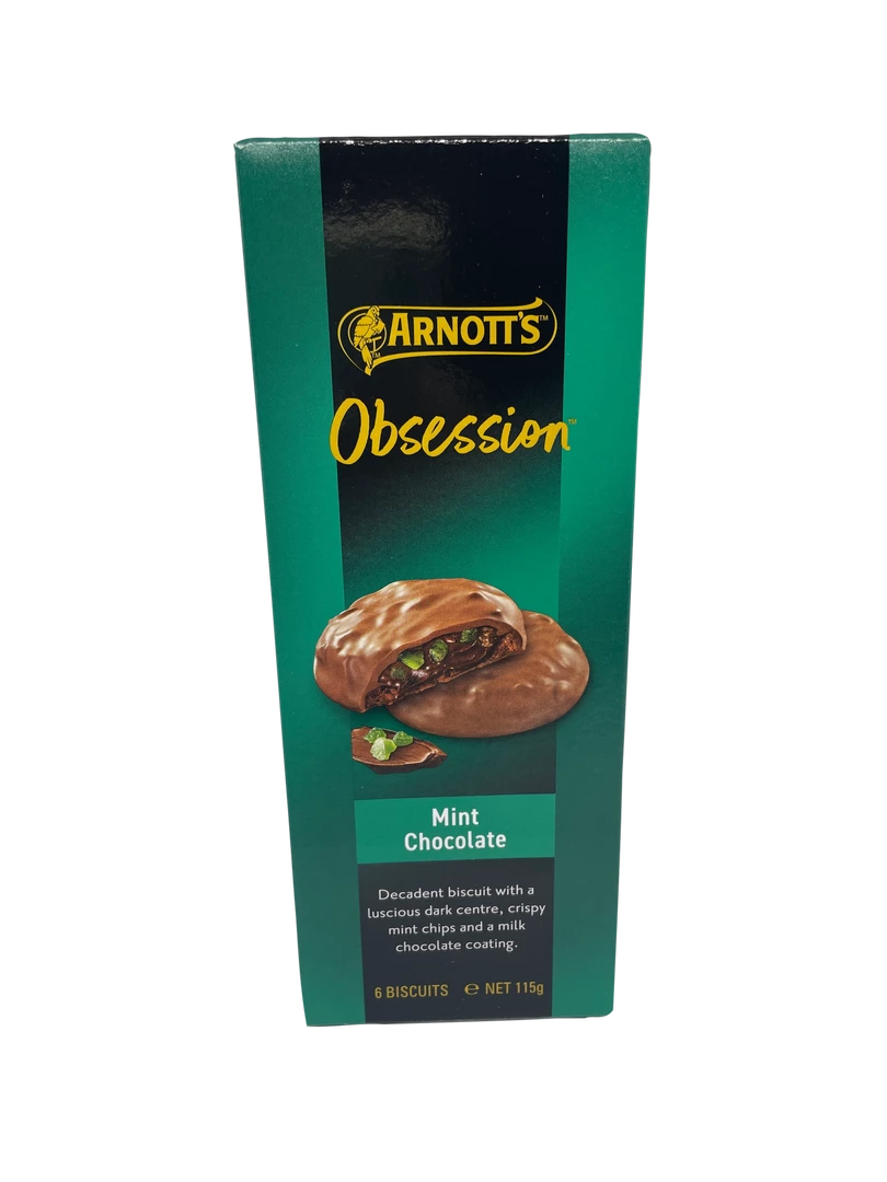 Be the first to review “Arnotts Arnott’s Obsession Mint Chocolate Biscuit 115g” Cancel reply