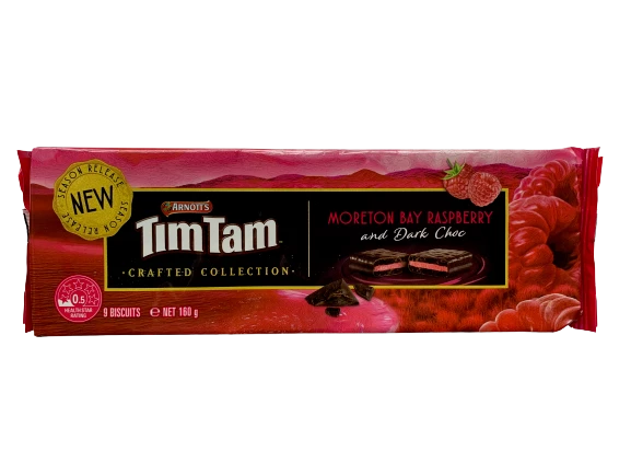 Lusciously sweet with a refreshing tart bite, we’e sourced these delicious berries for our smooth raspberry cream, which is sandwiched between two crunchy biscuits and covered in our rich decadent Tim Tam dark chocolate.