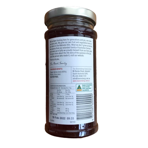This delicately flavoured jelly is made using Australian grown, aromatic quinces (and a few of our own too). Try as a glaze on ham or served with scones or crumpets.