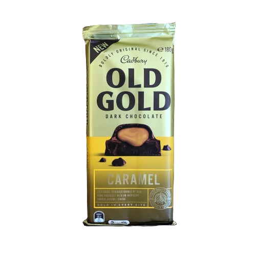 Cadbury Old Gold Caramel. 45% Cocoa. Generous chunks of rich dark chocolate with an indulgent, smooth caramel.