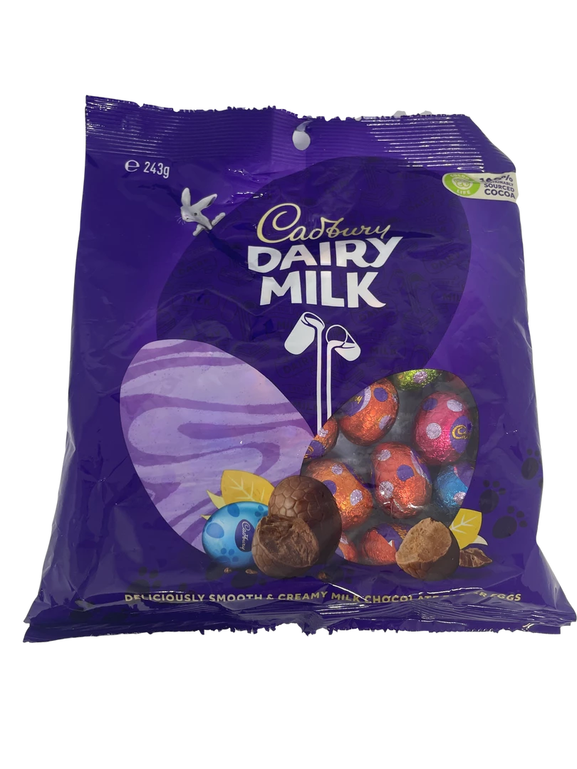 Cadbury Dairy Milk Egg Bag is filled with deliciously smooth & creamy milk chocolate Easter Eggs.