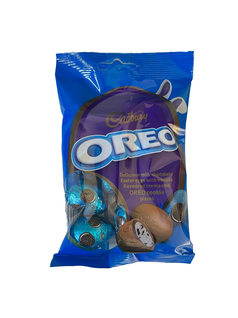 Delicious milk chocolate Easter eggs with vanilla flavoured creme and Oreo cookie pieces.