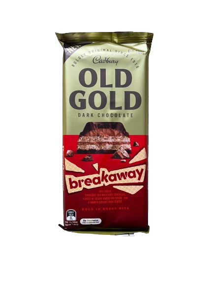 45% cocoa signature Old Gold dark chocolate with layers of crispy wafer and creme, and a smooth and creamy choc centre