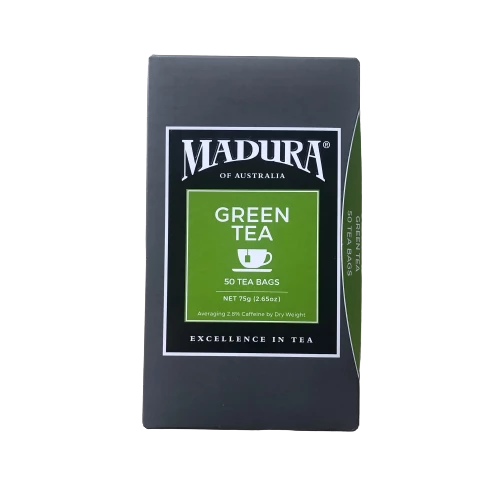 Madura Green Tea is a soothing blend of pure sub-tropical south Asian teas artfully blended with our own Australian estate tea, producing a delicate, pleasurable beverage. With regular consumption, a reliable source of antioxidants, an aid to good digestion and a contribution to healthier living.