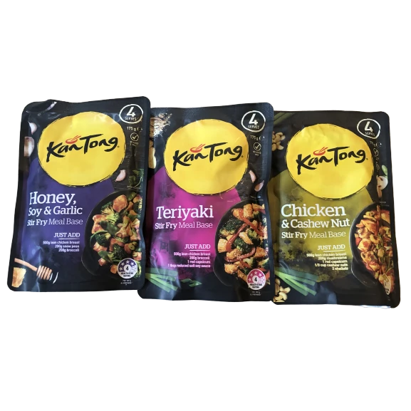Simply add the contents of the pouch to your favourite stir-fry ingredients for a twist on your favourite meals. Prepare a tasty midweek dinner for your family in only 15 minutes with Kan Tong meal bases. This tasty meal base contains no added MSG and no artificial colours or flavours.