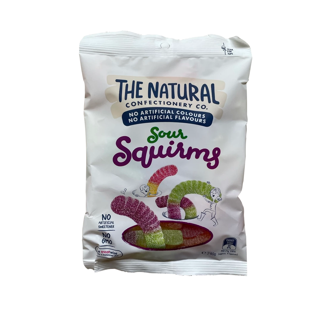 Glucose Syrup (from Wheat and Corn), Cane Sugar, Food Acids (Fumaric, Tartaric, Citric), Acid Modified Wheat Starch, Water, Gelatine, Natural Flavours, Fruit Juice Concentrate, Natural Colours (Spirulina, Turmeric, Grape Skin Extract, Anthocyanin, Black Carrot, Paprika Oleoresin).