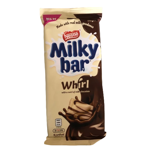Enjoy the best of both worlds with Milky Bar whirl block 170g – deliciously creamy Milky Bar now with a swirl of smooth milk chocolate.
