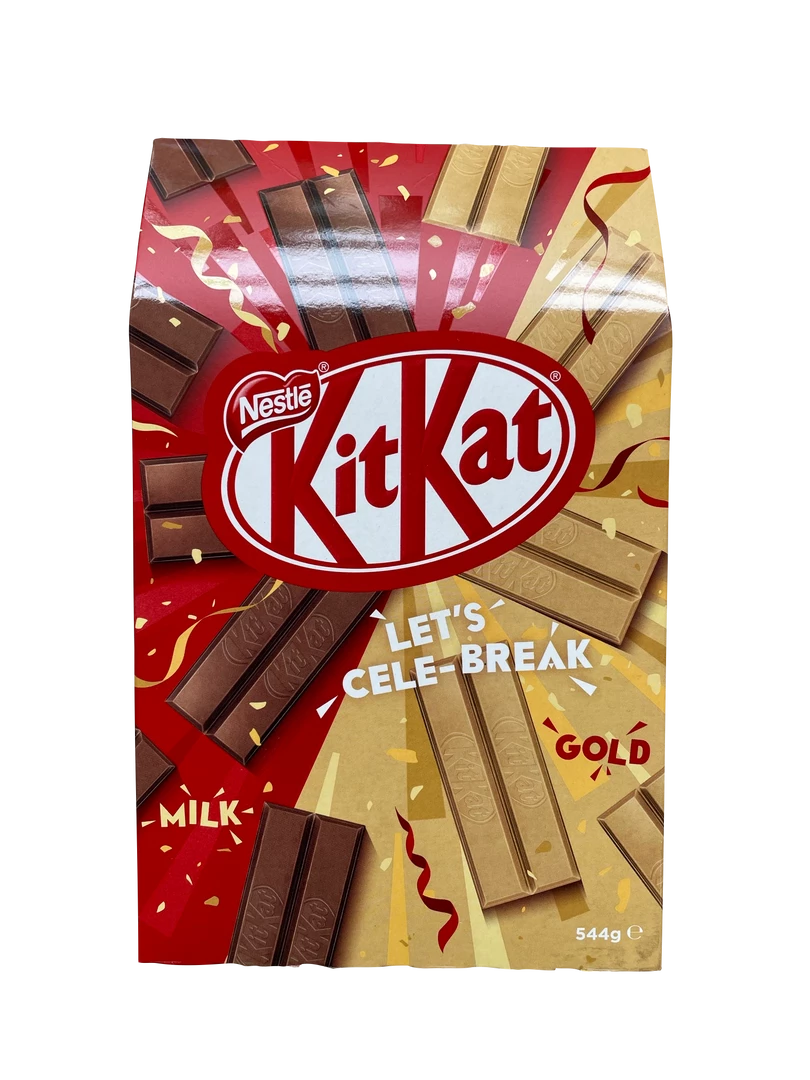 KITKAT 2 Finger Milk & Gold Giftbox 544g contains a delicious mix of Crisp Wafer Fingers Covered in Golden White Choc, and Crisp Wafer Fingers Covered with Smooth Milk Chocolate. KITKAT is the ideal treat when you’re enjoying a break. Enjoying chocolate as part of a balanced diet is one of life’s little pleasures. HAVE A BREAK, HAVE A KITKAT.