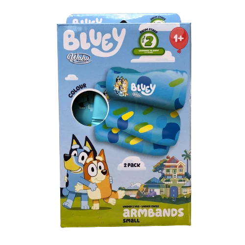Little Bluey Fans will be calm and comfy in these contoured, colourful inflatable arm bands as they learn to paddle, splash and swim – just like the big kids!