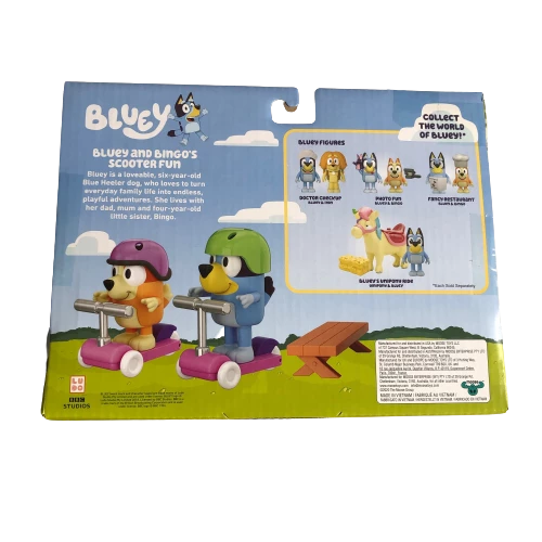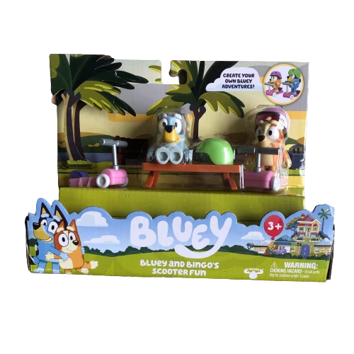 Bluey, Bingo and your kiddos can let the good times roll with Bluey and Bingo’s Scooter Fun! This adorable playset includes figures of their favorite blue heeler pups and two pink scooters they can zip around on!