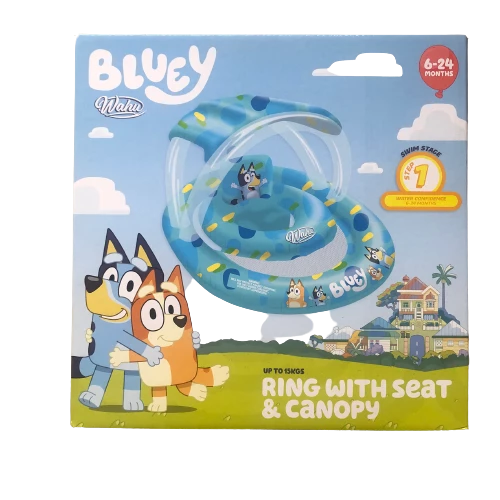 Little Bluey fans can enjoy a relaxing day in the pool with the Bluey Ring with Seat and Canopy. This inflatable features a play area made from mesh to keep toys out of the water and is designed with scratch-free seams, plus a backrest to maximize your little oneโs comfort whilst preventing any skin irritation.