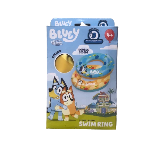 Enjoy a relaxing day in the pool with the dual sided Bluey x Wahu Swim Ring so you can swim with either Bluey or Bingo!