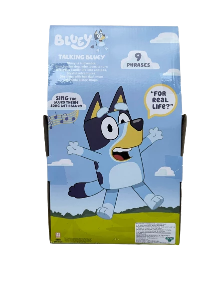 Bluey is a loveable, six-year-old Blue Heeler dog, who loves to turn everyday family life into endless, playful adventures. Bring the fun and imaginative play of Bluey home with the Talking Bluey 13″ (33cm) Plush! Bluey loves playing with her family, especially with her little sister Bingo.