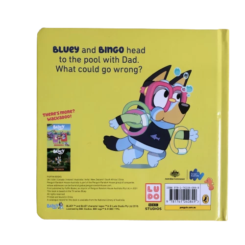 Bluey and Bingo head to the pool with Dad. What could go wrong? A gorgeous board book for kids of all ages.