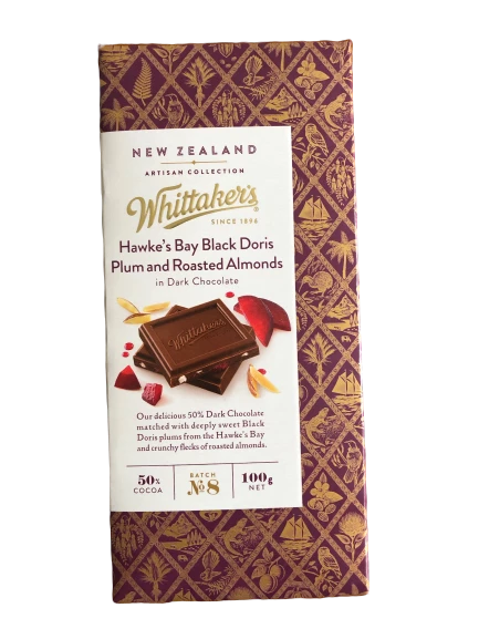 Whittakers Whittaker’s Hawke’s Bay Black Doris Plums & Roasted Almonds In Dark Choc 100g Chocolate